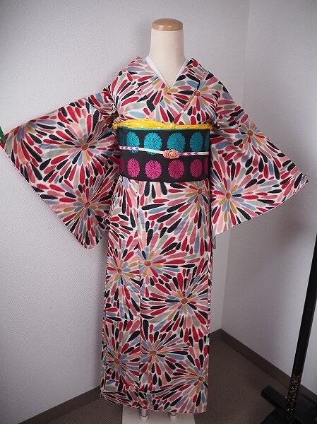 stー6894 ヴィンテージ 正絹銘仙袷 花